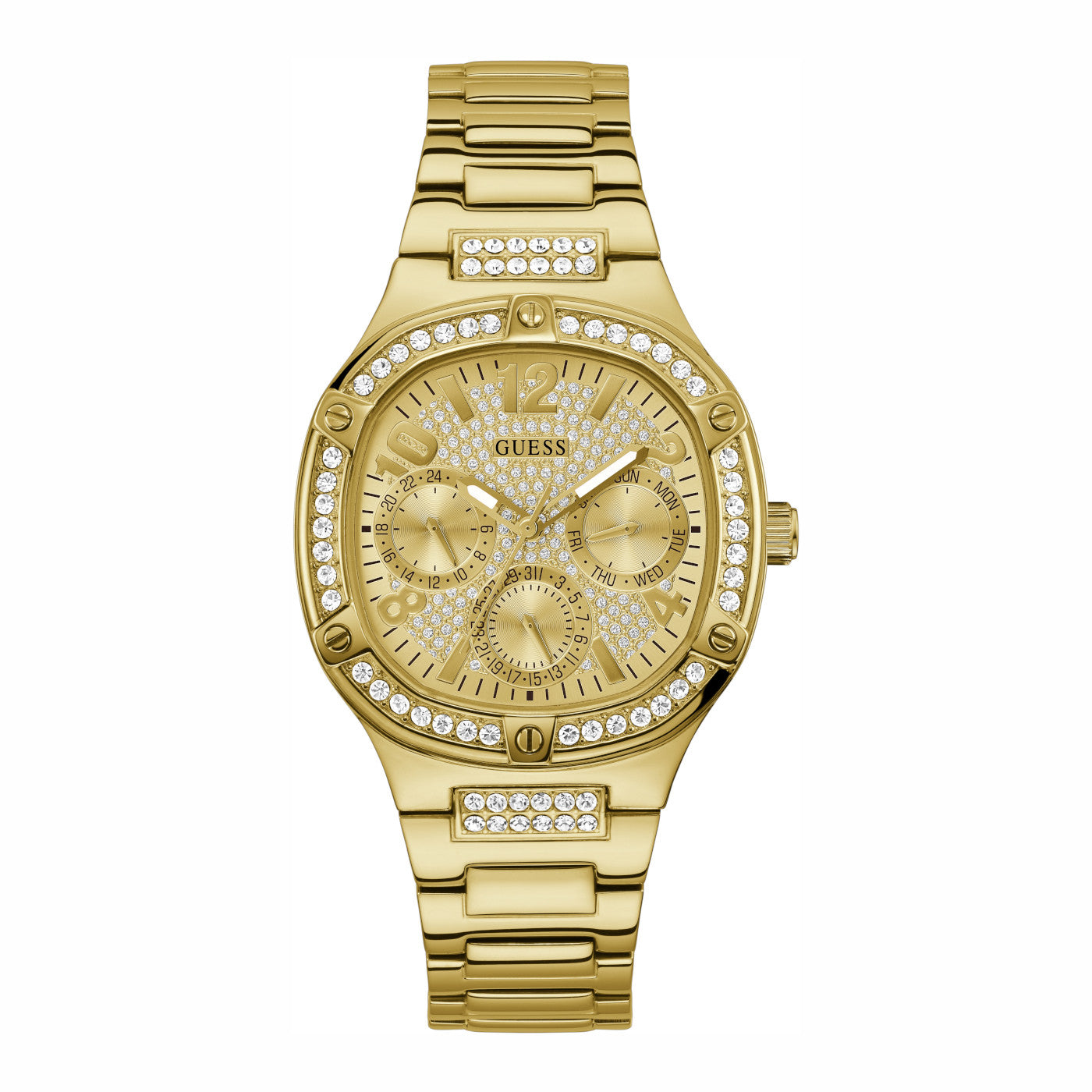 A képen látható Guess Női karóra tok anyaga Nemesacél, színe Ezüst, a szíj anyaga Nemesacél és a színe Ezüst. Az óratok átmérője 36mm, alakja Kerek. A karóra üvege Kristály (nehezen karcolható), szerkezete Kvarc és vízállósága 3 atm (30m) (cseppmentes). Az óra új állapotban, gyári dobozával együtt kerül csomagolásra.
